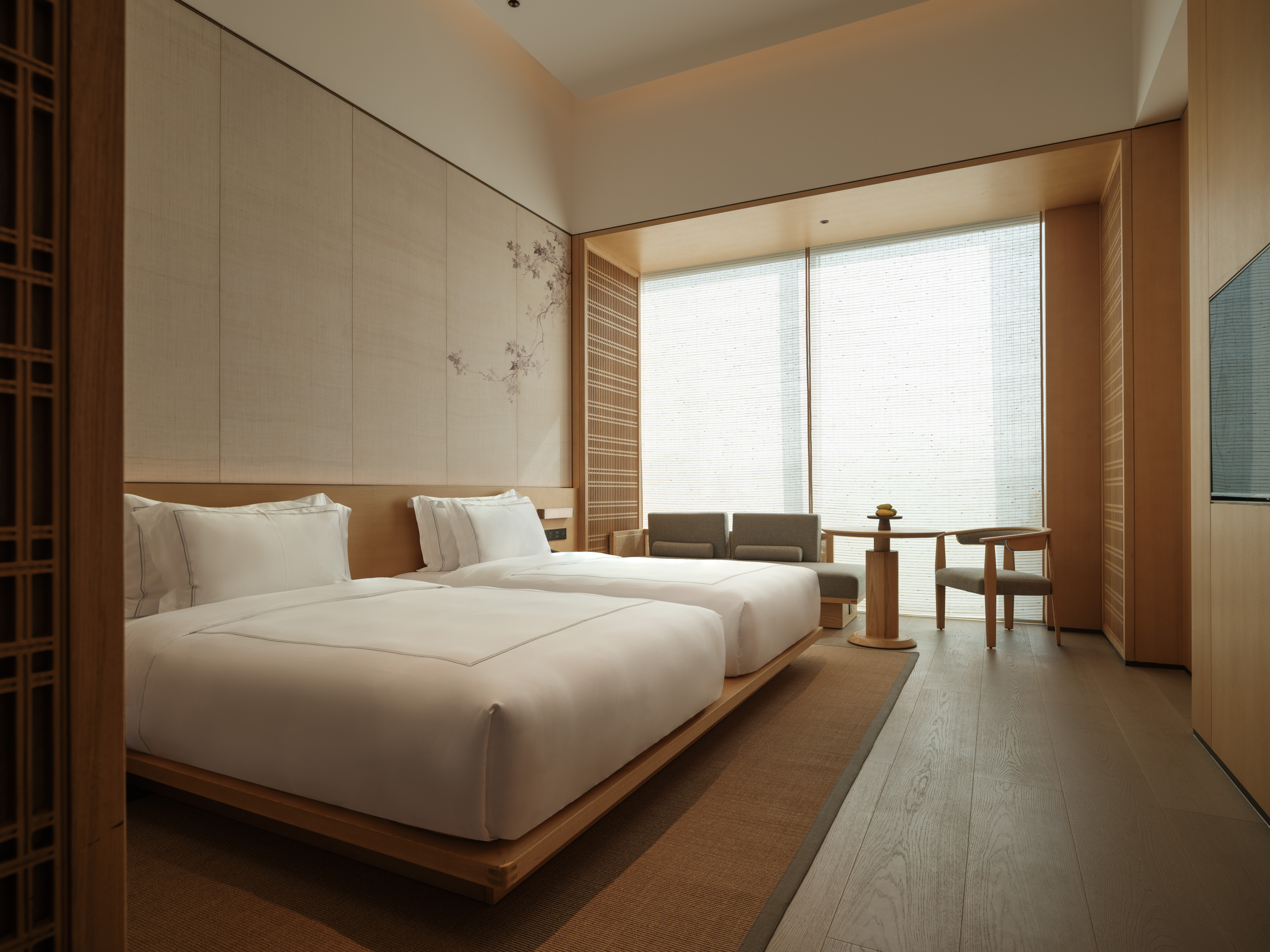 客房特别采用定制隔音门板与气密窗设计,精心构建一道声音屏障。